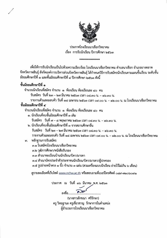 รับสมัครนักเรียน ปีการศึกษา 2563